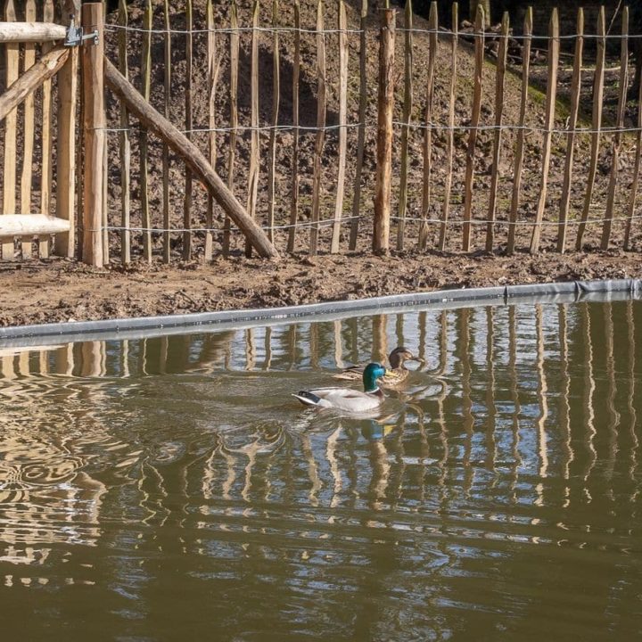 la particularité de ces aménagements réside en une gestion écologique des eaux pluviales: par un système de drainage, le trop plein des citernes est raccordé à un étang, qui par débordement, permettra aux eaux pluviales de rester sur le terrain.
