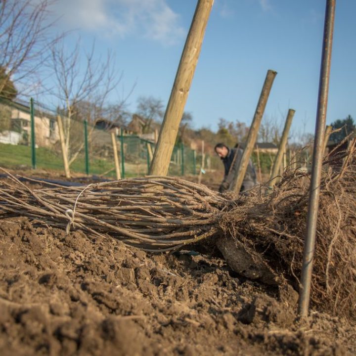 Ce jardin en pente, bien exposé au sud convient particulièrement à la culture de la vigne et des petits fruits (groseilles, mures, framboises) .