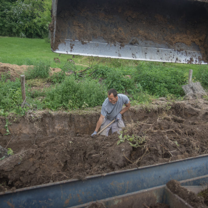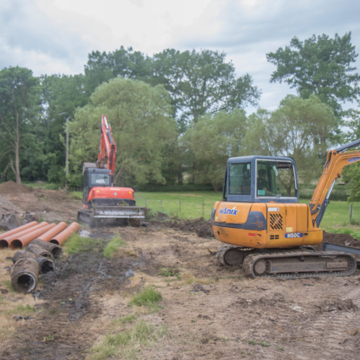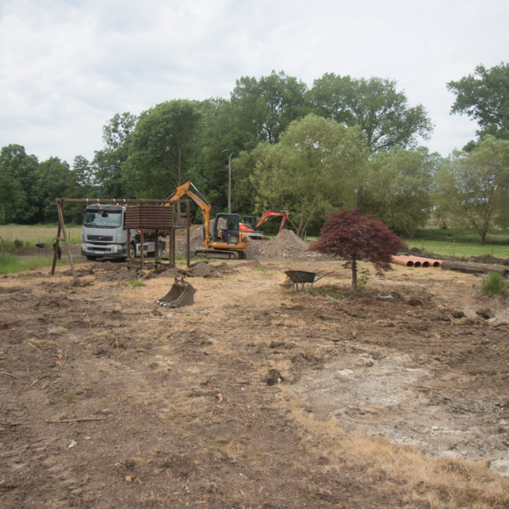 Aménagement d’une aire de loisirs autour d’un gîte rural : remise à niveau des terres, réalisation d’une pelouse , réfection de l’égouttage, aménagement d’un parking , installation de citernes à eau de pluie.