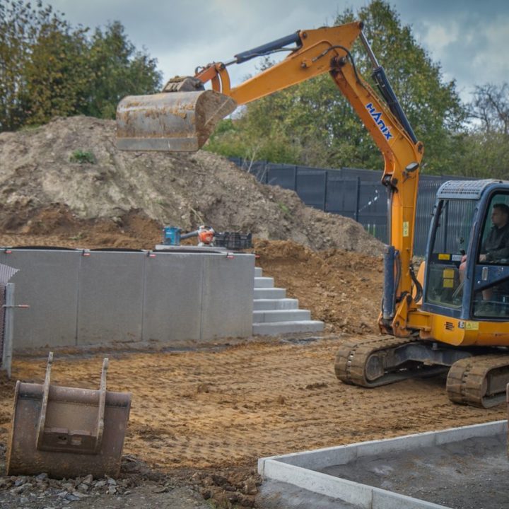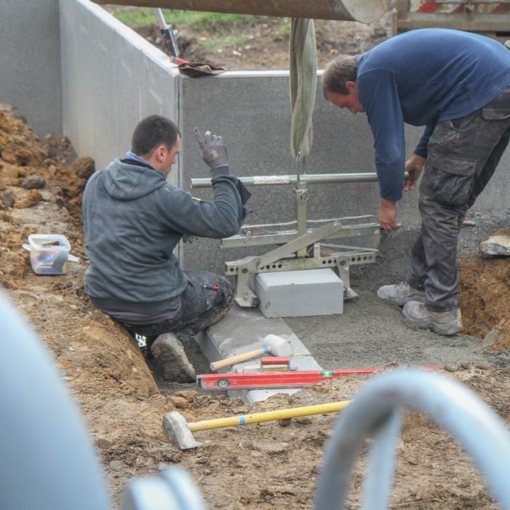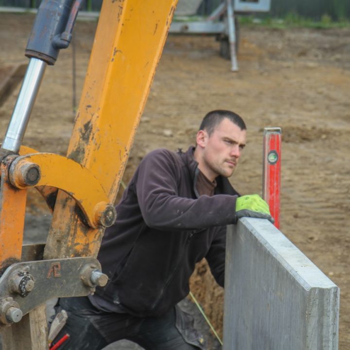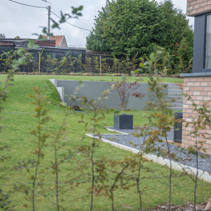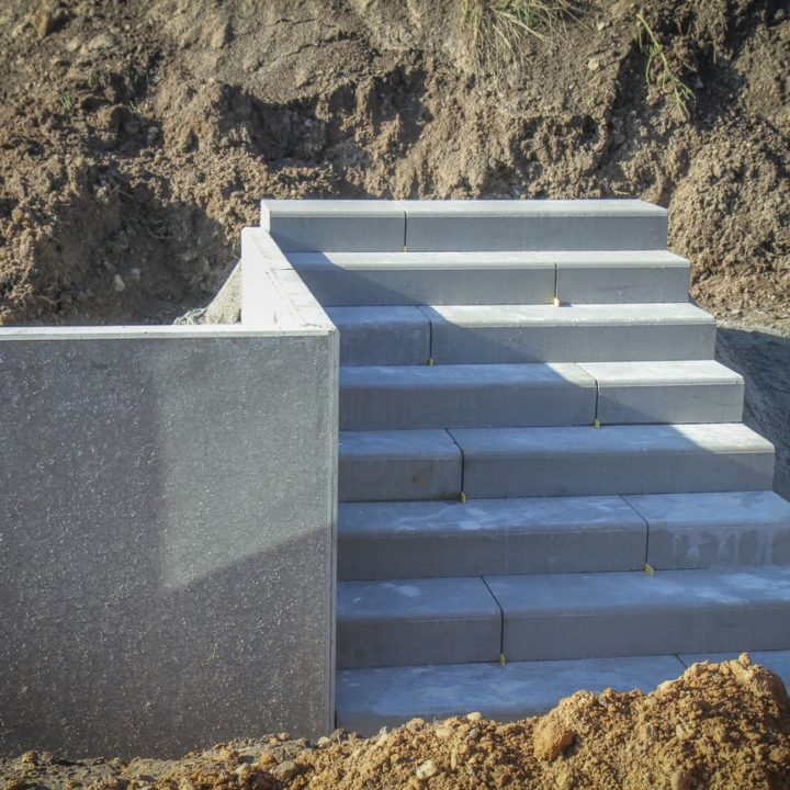 Terrassements, nivellement de terrain, pose de L en béton, escalier .