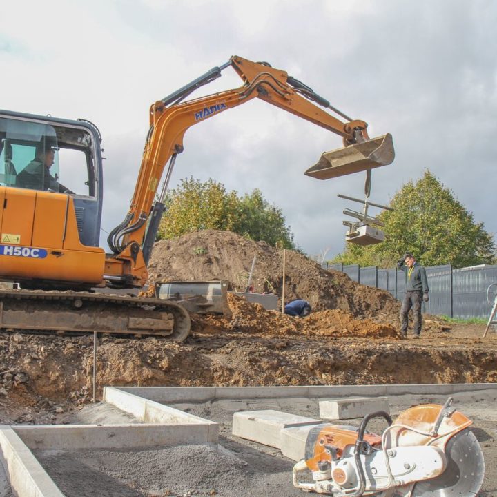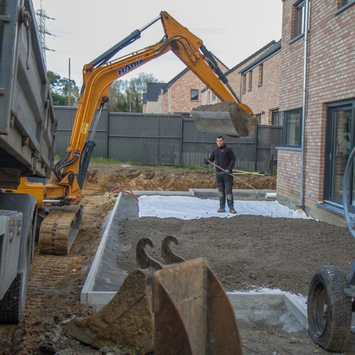 Réalisation d’allées carrossables, placement de bordures et zones de parking.