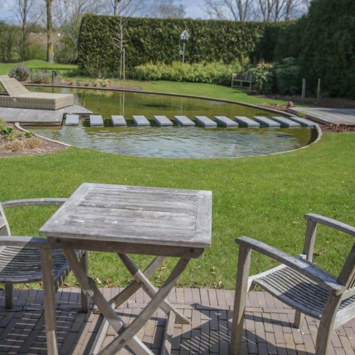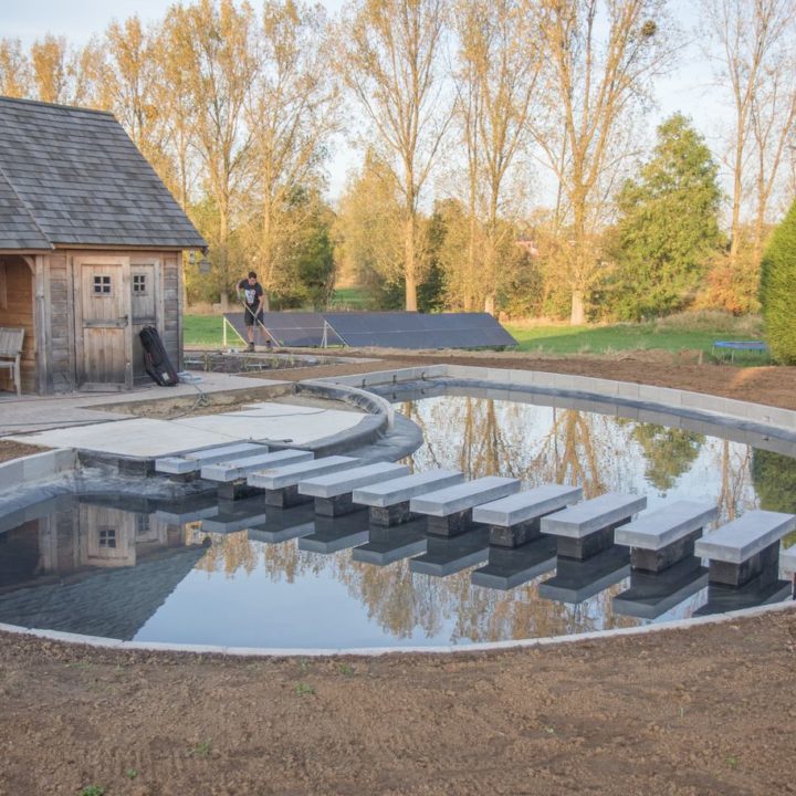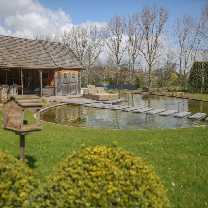 Le système de filtration et d’épuration de cette pièce d’eau est tout à fait naturel. Il lui assure une eau limpide toute l’année , et ce grâce à l’action combinée des bactéries et de la végétation.
