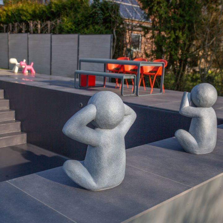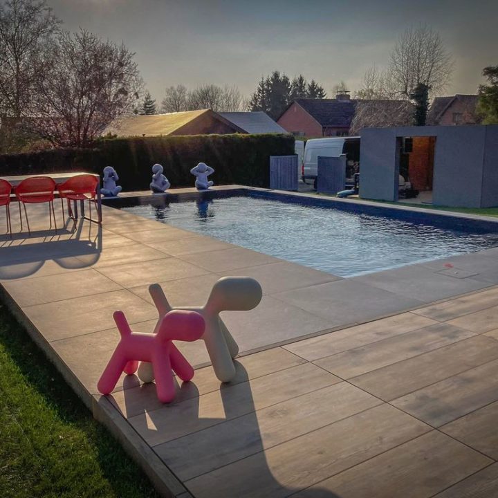 Une terrasse en dalles de céramique ( 90×90 ) permet de profiter de l’espace de plein pied.