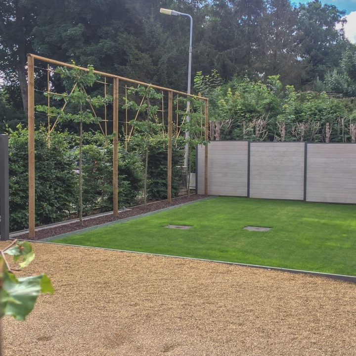 A l’avant de la maison , une haie en tilleuls palissés est plantée.