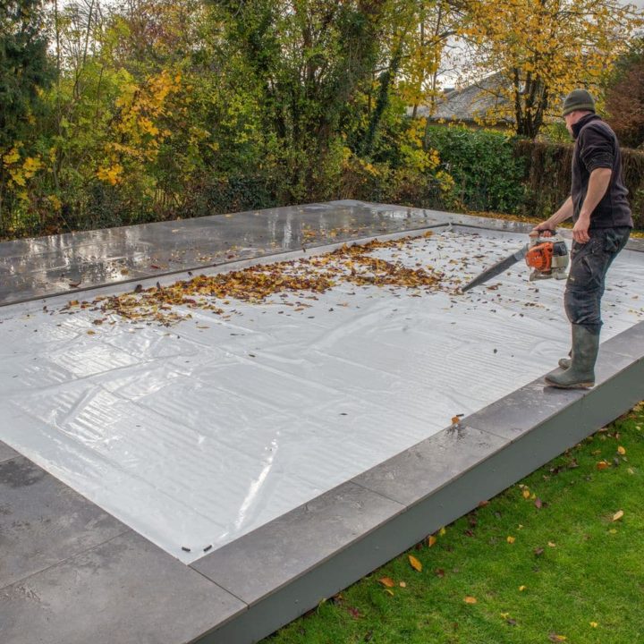 Pour les piscines que nous avons construites, nous utilisons la technique dite de l’ hivernage passif. Ce qui économise l’eau et l’électricité .
