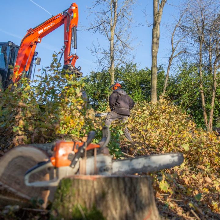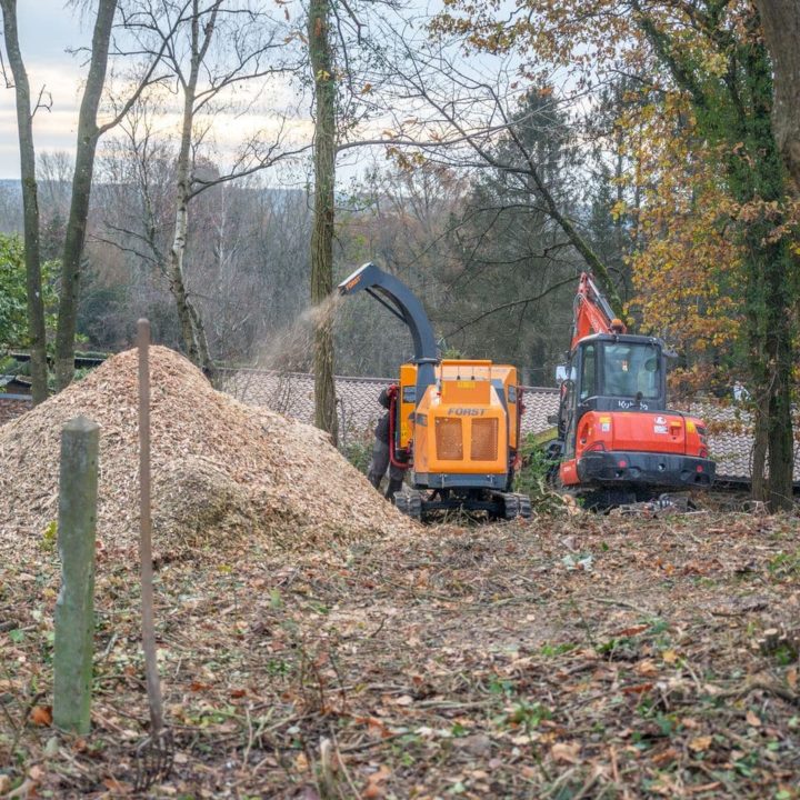 Nous avons profité des températures hivernales de ce mois de décembre 2022 pour procéder, dans ce petit bois à l’arrière d’une propriété campagnarde, à des abattages, dessouchages et évacuation des déchets.