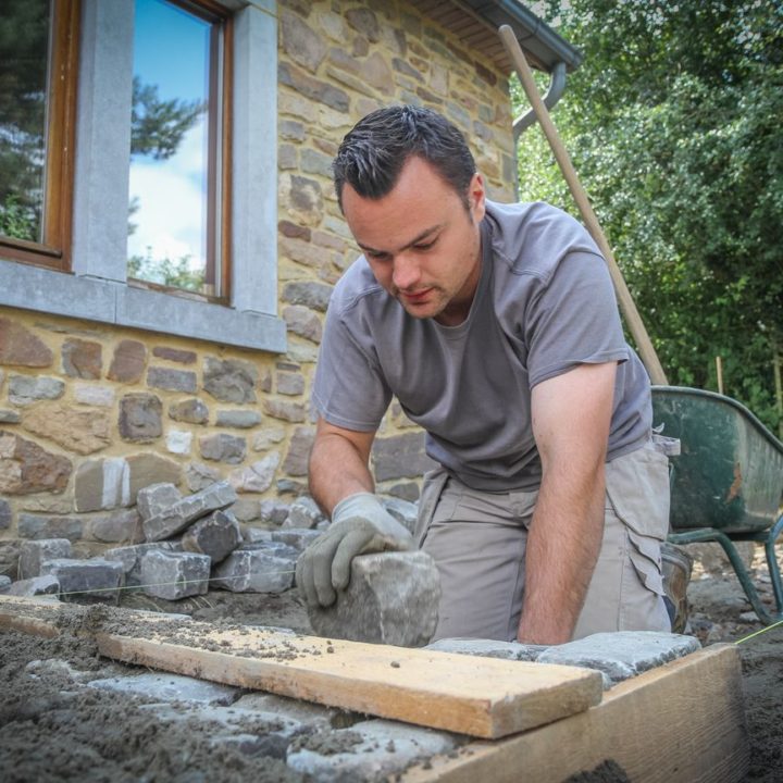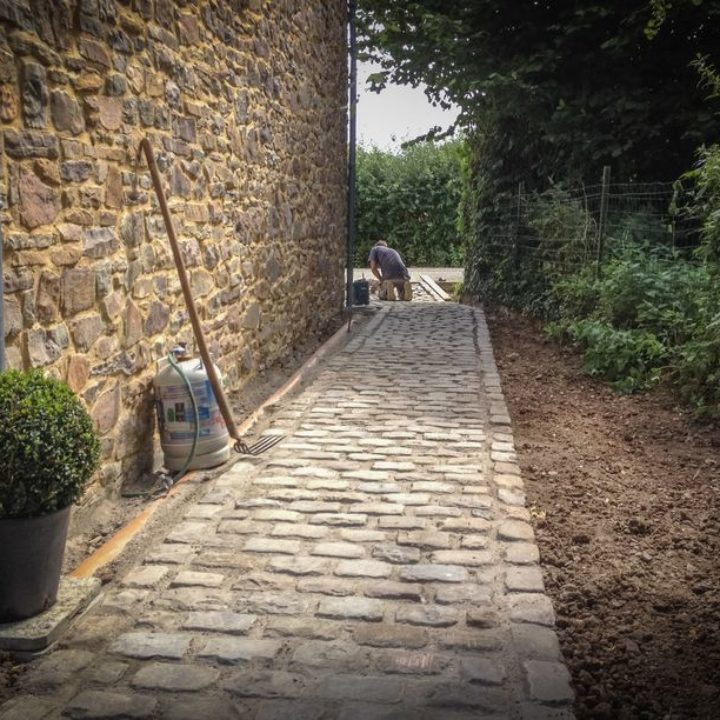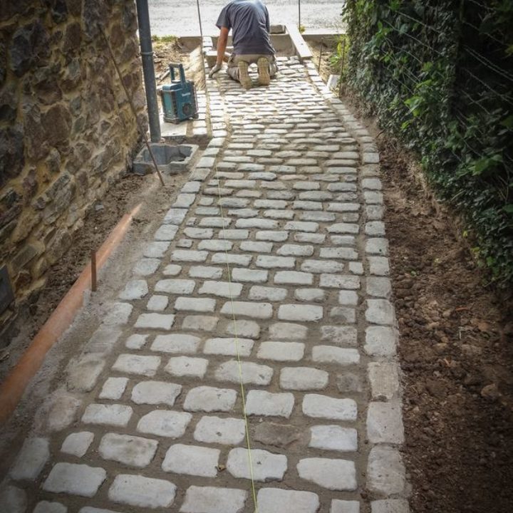 Pavage à l’ancienne avec du mortier et des pavés pour un coté rustique, ancien, une valeur esthétique au goût du jour