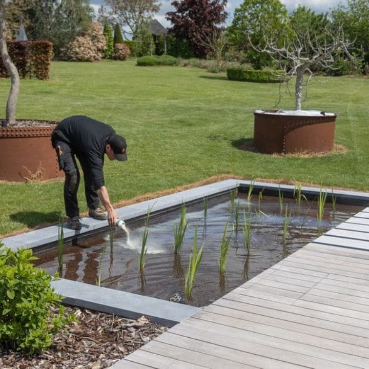 Même si elle nécessite moins d’entretien qu’une piscine classique, l’étang de baignade demande une surveillance ( qualité de l’eau, nettoyage des pompes, activation de bactéries, …) , que nous réalisons sur les bassins que nous avons construits .