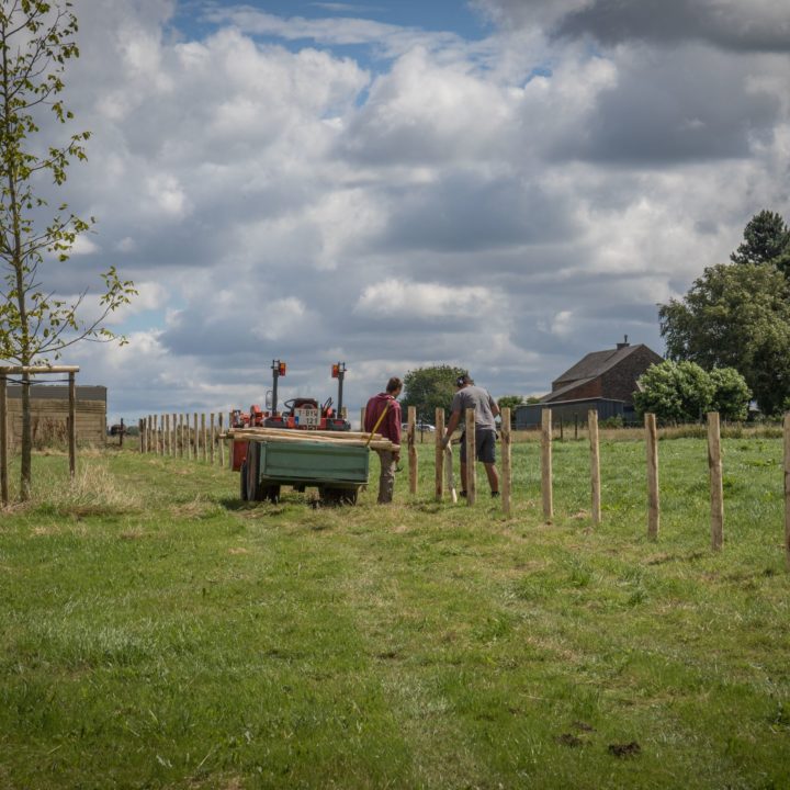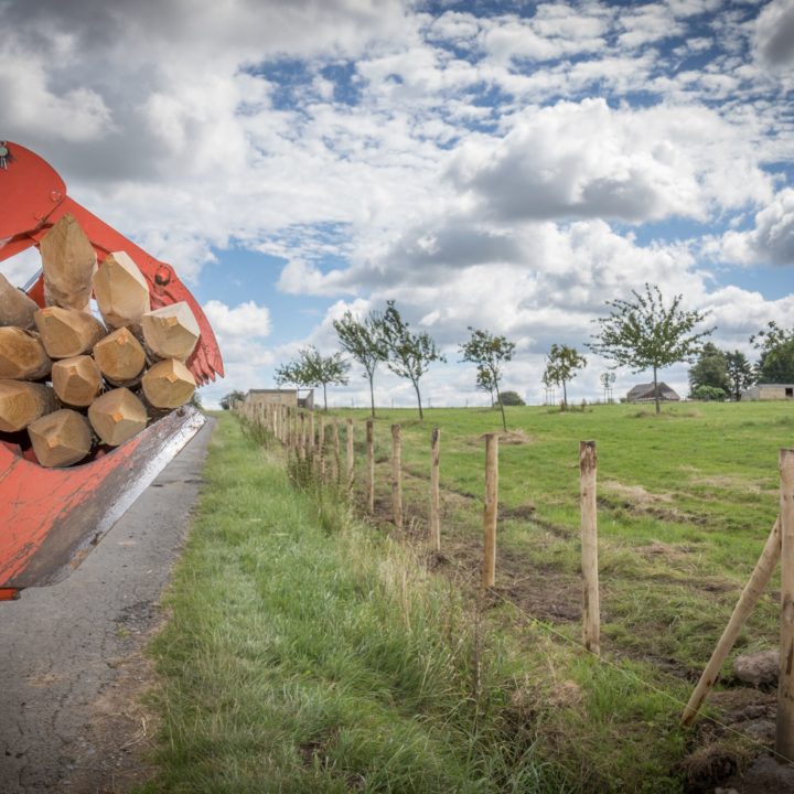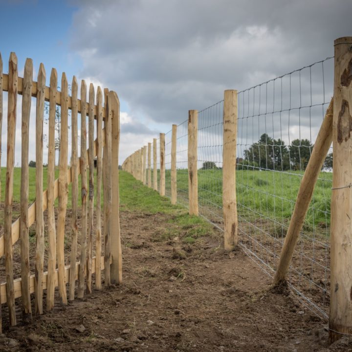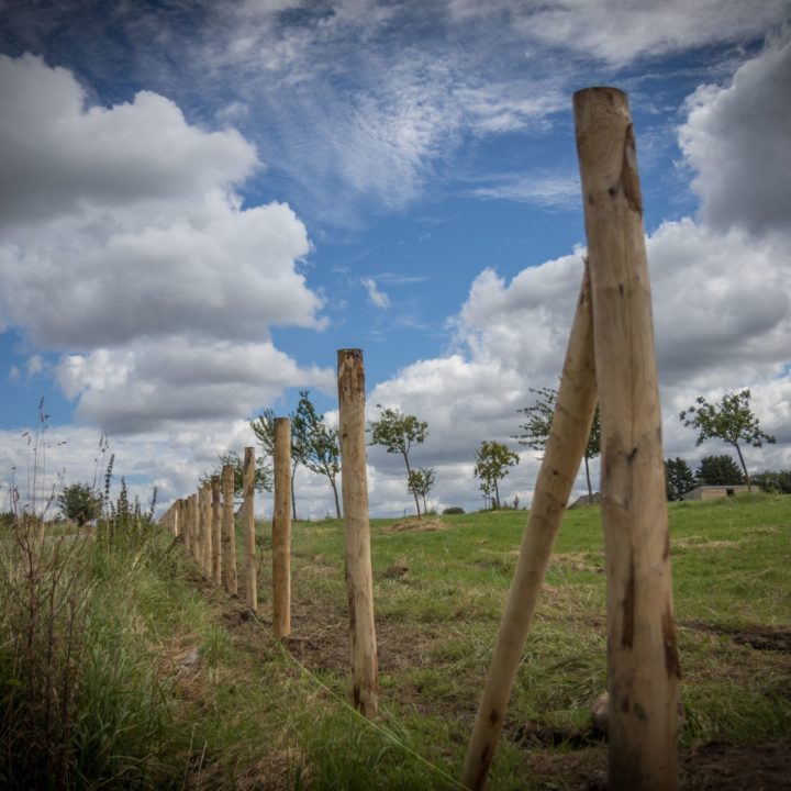 Mise en place de piquets et de portails en châtaignier. Ce bois ne nécessite pas de traitement chimique , il a une longue durabilité naturelle , et s’harmonise bien dans les paysages champêtres