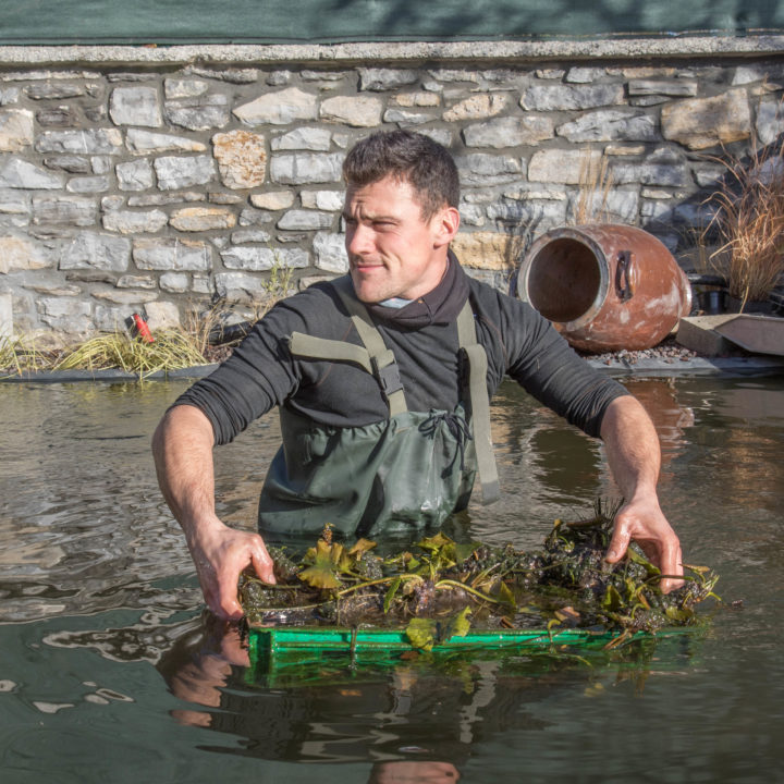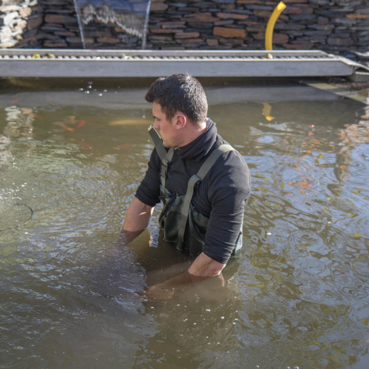 Réhabilitation d’un bassin à Koïs qui sont des poissons gracieux, affectueux et très attachants avec un filtre multi-chambres